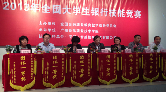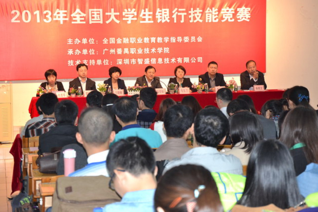 2013年11月24日,由全國金融職業(yè)教育教學(xué)指導(dǎo)委員會主辦、廣州番禺職業(yè)技術(shù)學(xué)院承辦、深圳智盛信息技術(shù)股份有限公司支持的“2013年全國大學(xué)生銀行技能競賽”在廣州番禺職業(yè)技術(shù)學(xué)院舉行。中國人民銀行中國金融培訓(xùn)中心主任、全國金融行業(yè)指導(dǎo)委員會常務(wù)副主任委員萬存知,中國人民銀行中國金融培訓(xùn)中心副主任、全國金融行指委常務(wù)秘書長馬玉蘭,廣州番禺職業(yè)技術(shù)學(xué)院副校長王曉敏,智盛公司總經(jīng)理彭家源等領(lǐng)導(dǎo)蒞臨比賽現(xiàn)場。來自全國84所高職院校的252名選手和領(lǐng)隊(duì)、指導(dǎo)老師以及相關(guān)單位和觀摩單位代表共700余人參加活動。