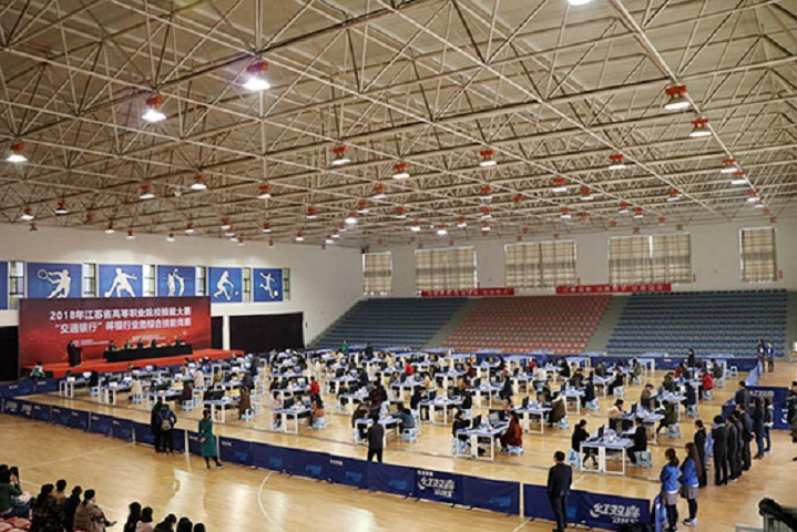 3月25日上午8時(shí),由江蘇省教育廳主辦、江蘇財(cái)經(jīng)職業(yè)技術(shù)學(xué)院承辦、交通銀行淮安市分行協(xié)辦的2018年江蘇省高等職業(yè)院校技能大賽“交通銀行杯”銀行業(yè)務(wù)綜合技能競(jìng)賽在江蘇財(cái)經(jīng)職業(yè)技術(shù)學(xué)院成功舉行,20所高職院校的參賽隊(duì)參加本次大賽開幕式。