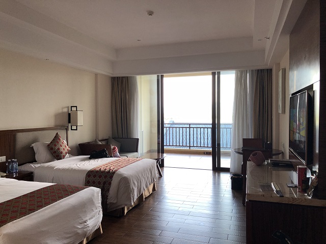 晚上我們?nèi)胱×嗽O(shè)施豪華,坐擁壯麗山景,依傍恬靜湖水,交相輝映,讓您沉浸于質(zhì)樸而浪漫的世外桃源的寶晶宮天鵝湖度假酒店。