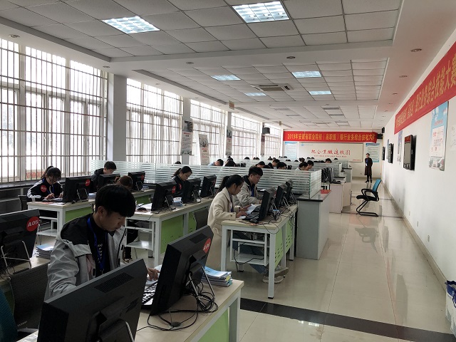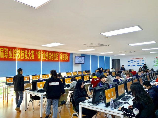 2019年安徽省職業(yè)院校技能大賽(高職組)“銀行業(yè)務(wù)綜合技能”競(jìng)賽在安徽財(cái)貿(mào)職業(yè)學(xué)院實(shí)訓(xùn)樓舉辦,本次銀行競(jìng)賽參賽人數(shù)再創(chuàng)新高,共有來(lái)自全省24所高職院校,41支代表隊(duì),164名選手參加賽。