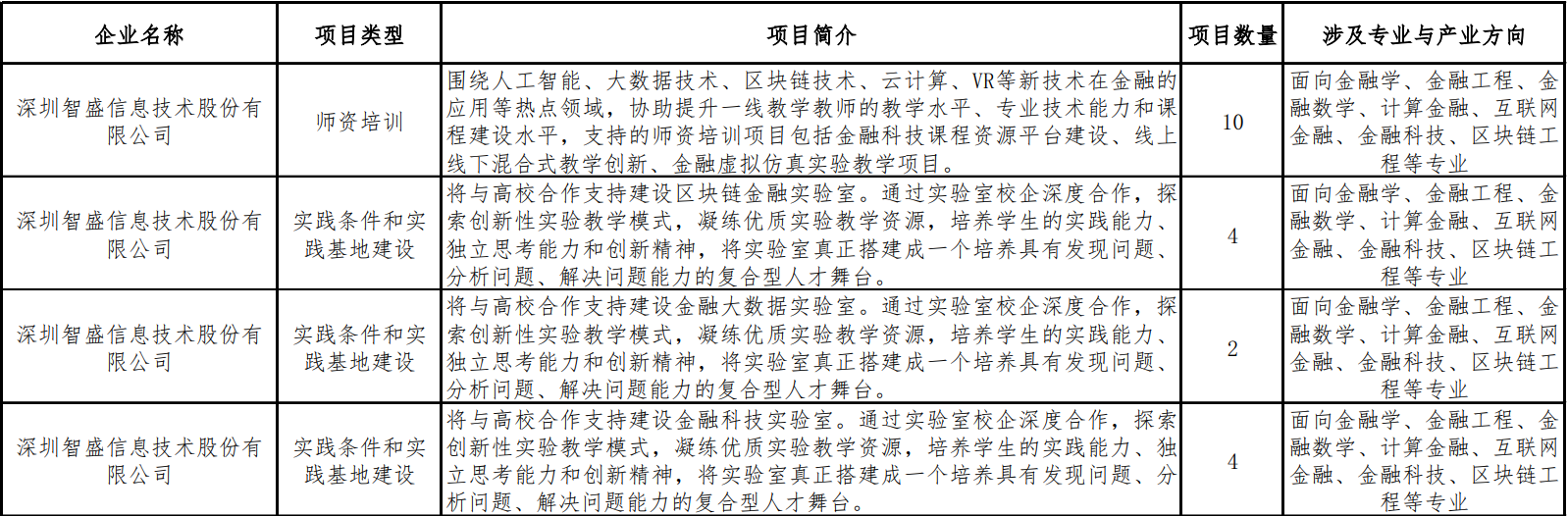 日前,教育部高等教育司發(fā)布了《關于公布有關企業(yè)支持的產(chǎn)學合作協(xié)同育人項目申報指南(2020年第一批)的通知》,深圳智盛信息技術股份有限公司申報的“教學內(nèi)容和課程體系改革”、“師資培訓”、“實踐條件和實踐基地建設”三大類別共計36個項目位列其中,成為獲得教育部批準的產(chǎn)學合作協(xié)同育人項目實施企業(yè)之一。