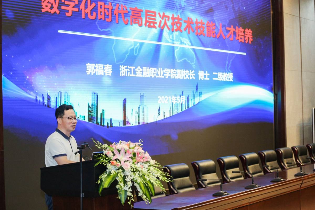 最后,浙江金融職業(yè)技術(shù)學(xué)院副校長郭福春發(fā)表了有關(guān)數(shù)字時(shí)代高層次技術(shù)技能人才培養(yǎng)的演講,對數(shù)字化時(shí)代的人才改革提出了獨(dú)到的見解。