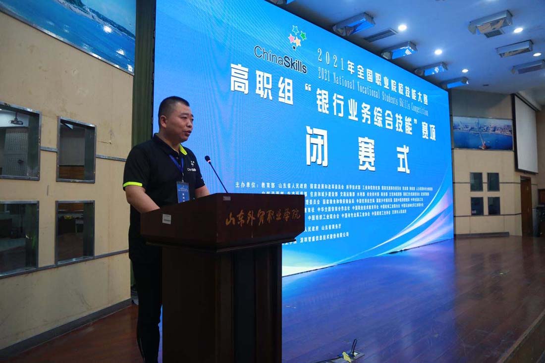 6月10日-11日,由教育部、山東省人民政府等36個(gè)部委、省級(jí)人民政府主辦,山東省教育廳、青島市人民政府、山東省商務(wù)廳承辦,山東外貿(mào)職業(yè)學(xué)院與我司協(xié)辦的2021年全國(guó)職業(yè)院校技能大賽高職組“銀行業(yè)務(wù)綜合技能”賽項(xiàng)圓滿落下帷幕。來(lái)自全國(guó)28省、直轄市、自治區(qū)(不含港澳臺(tái))的28支隊(duì)伍114名選手同臺(tái)競(jìng)技。