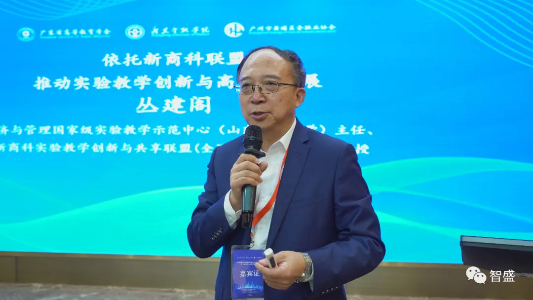 經(jīng)濟(jì)與管理國家級(jí)實(shí)驗(yàn)教學(xué)示范中心(山東財(cái)經(jīng)大學(xué))主任、新商科實(shí)驗(yàn)教學(xué)創(chuàng)新與共享聯(lián)盟(全國/山東)秘書長叢建閣教授以“依托新商科聯(lián)盟推動(dòng)實(shí)驗(yàn)教學(xué)創(chuàng)新與高質(zhì)量發(fā)展”為題作報(bào)告。