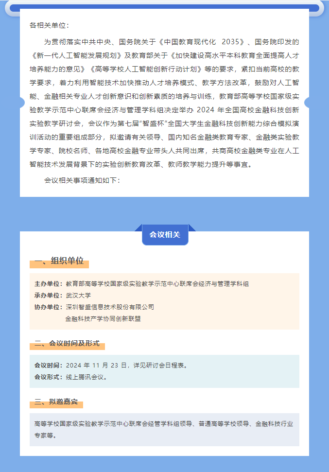 關(guān)于舉辦 2024 年全國高校金融科技創(chuàng)新實驗教學研討會的通知