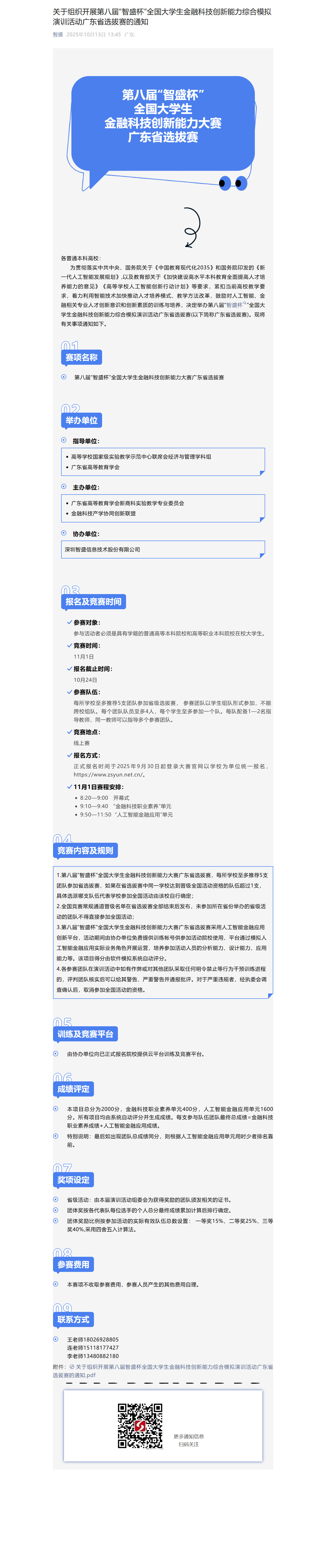 關(guān)于組織開展第八屆“智盛杯”全國大學(xué)生金融科技創(chuàng)新能力綜合模擬演訓(xùn)活動(dòng)廣東省選拔賽的通知