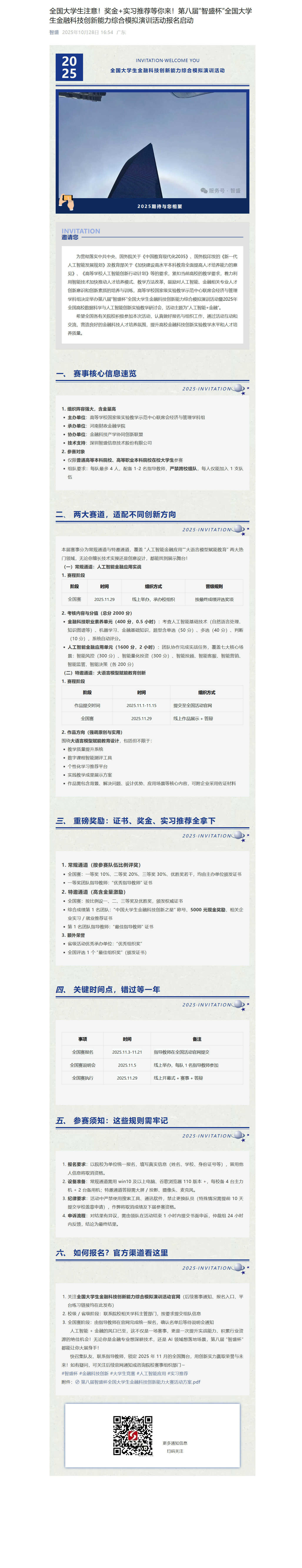 全國大學生注意!獎金+實習推薦等你來!第八屆“智盛杯”全國大學生金融科技創(chuàng)新能力綜合模擬演訓(xùn)活動報名啟動